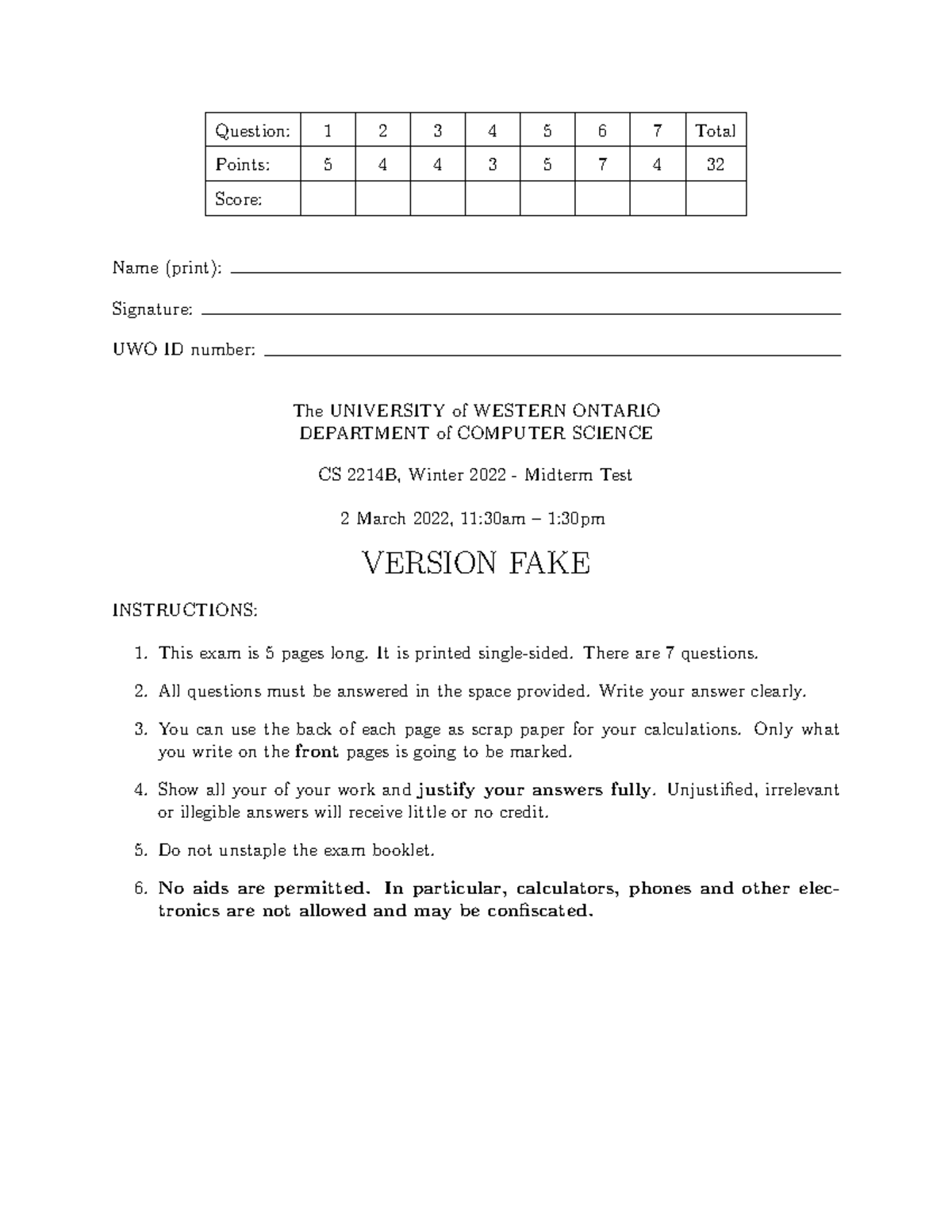 CS 2214B Mock Midterm Test 2 - Winter 2022 - Studocu