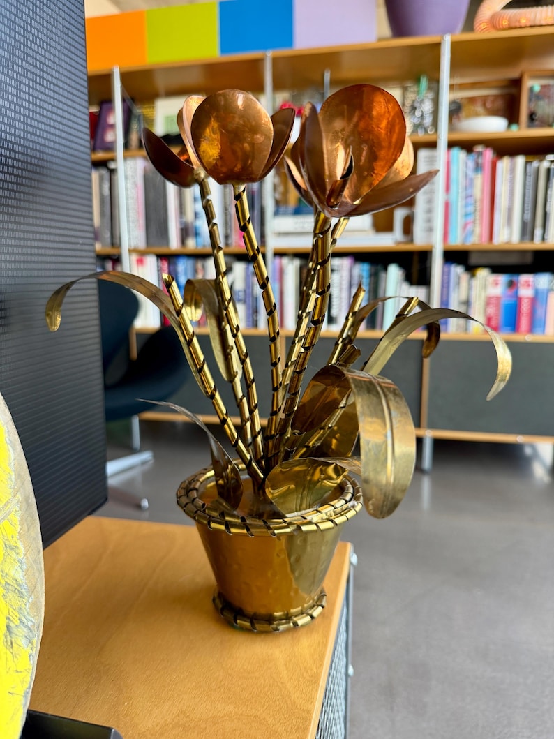 60s LLAMAS Kinetic Mixed Metal Potted Tulip Sculpture Brutalist Copper ...