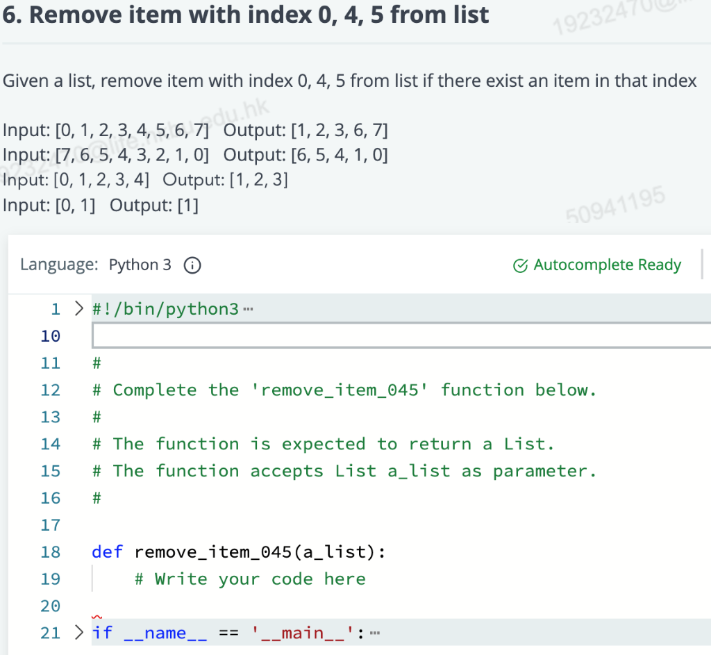 Solved Given a list, remove item with index 0,4,5 from list | Chegg.com