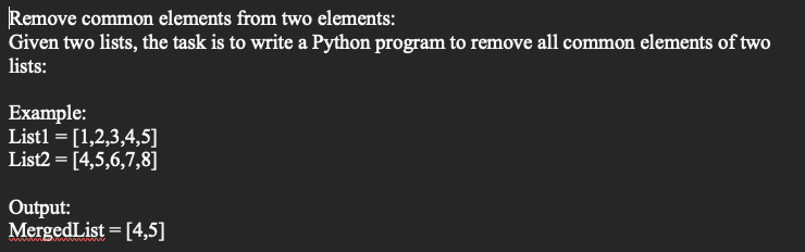Solved Remove common elements from two elements: Given two | Chegg.com