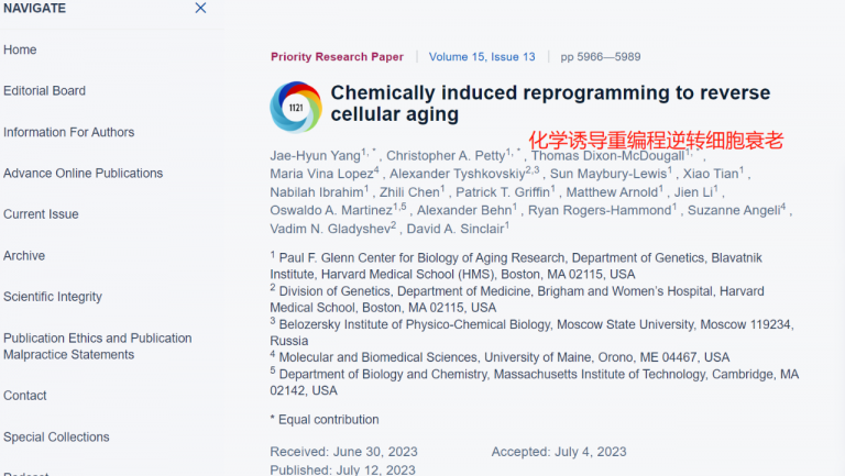 哈佛医学院:通过化学手段,成功逆转衰老