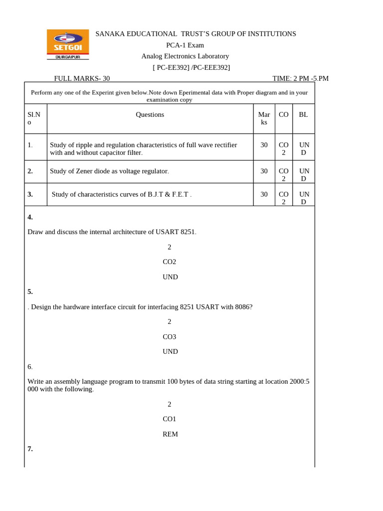 Pca1 Analog Electronics Lab QP | PDF | Computer Engineering ...