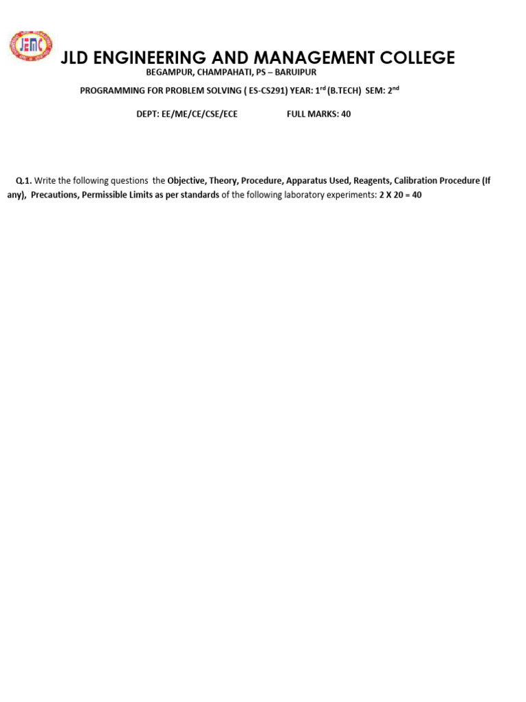 Programming For Problem Solving Pca1 | PDF