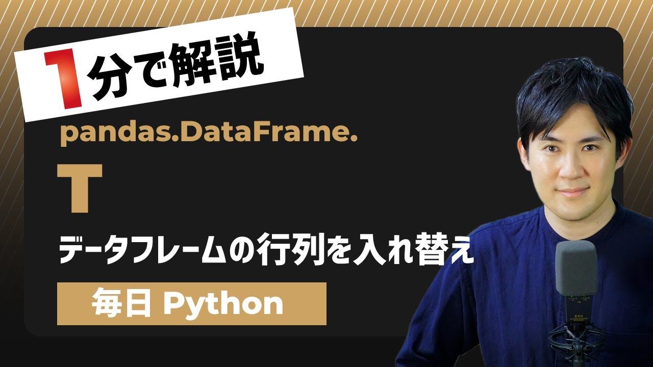 【毎日Python】Pandasのデータフレームの行列を入れ替える方法|T属性、transepose - YouTube