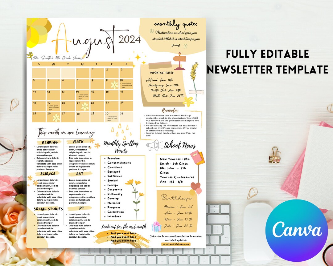 August 2024 Newsletter Template | Editable Monthly Newsletter ...