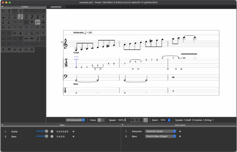 Power Tab Editor - view and edit guitar tablature - LinuxLinks