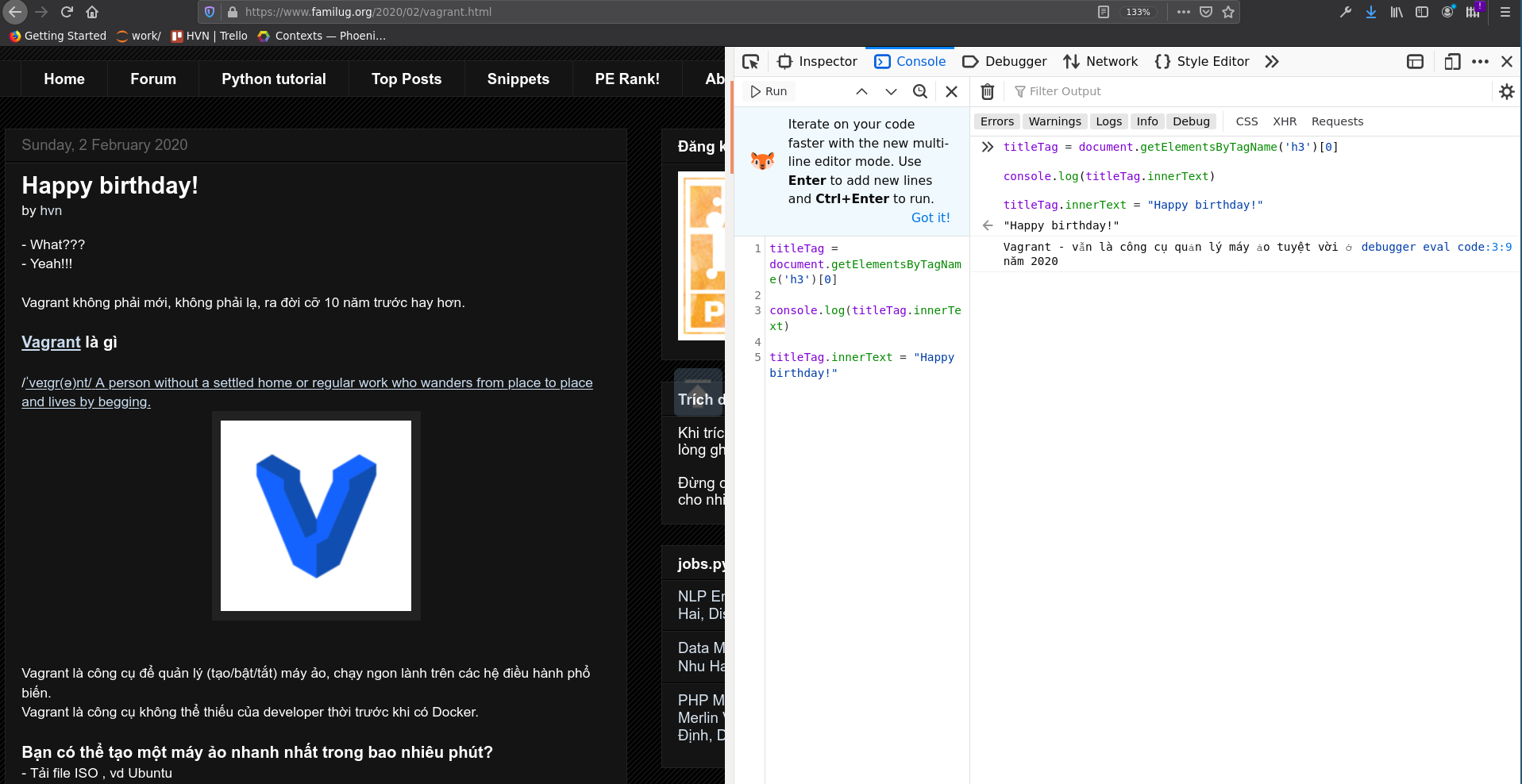 Tương tác với trang web bằng Console của trình duyệt qua một ví dụ đơn giản