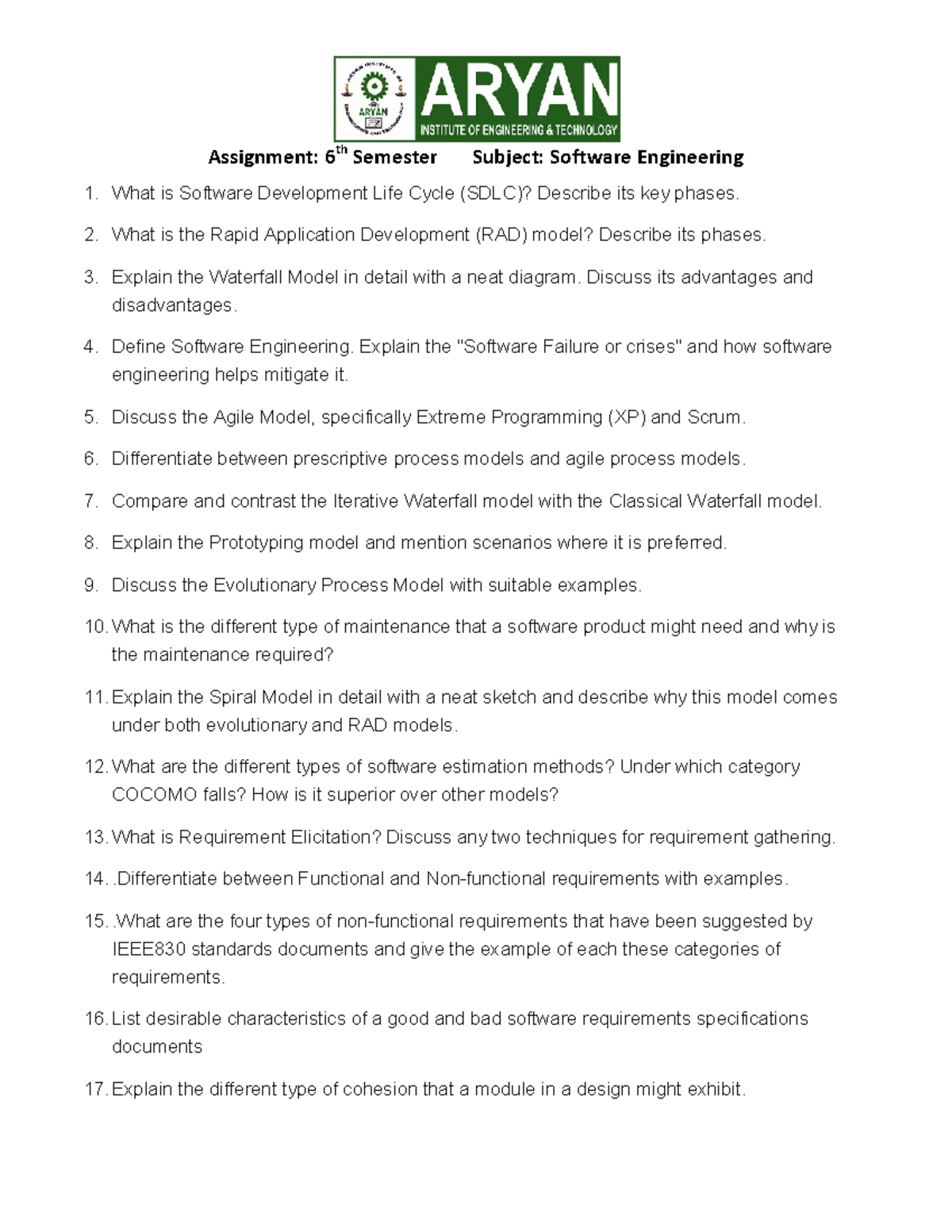 Assignment 6th Sem SE: Key Concepts in Software Engineering - Studocu