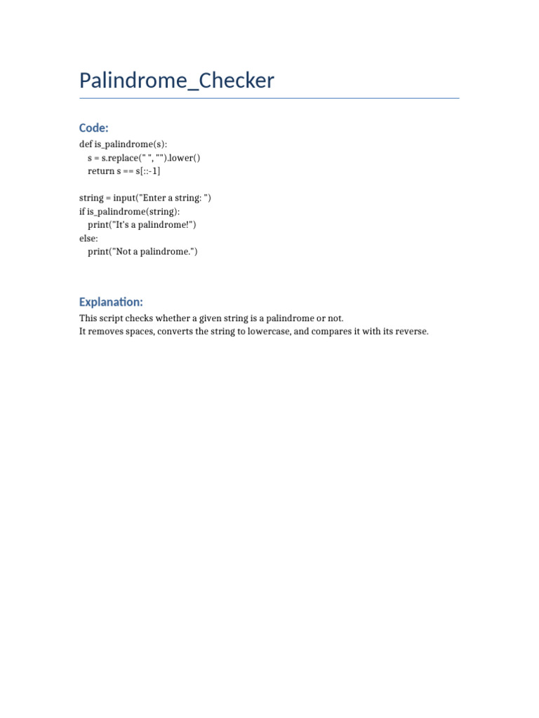 Factorial Calculation and Palindrome Checker in Python - Studocu