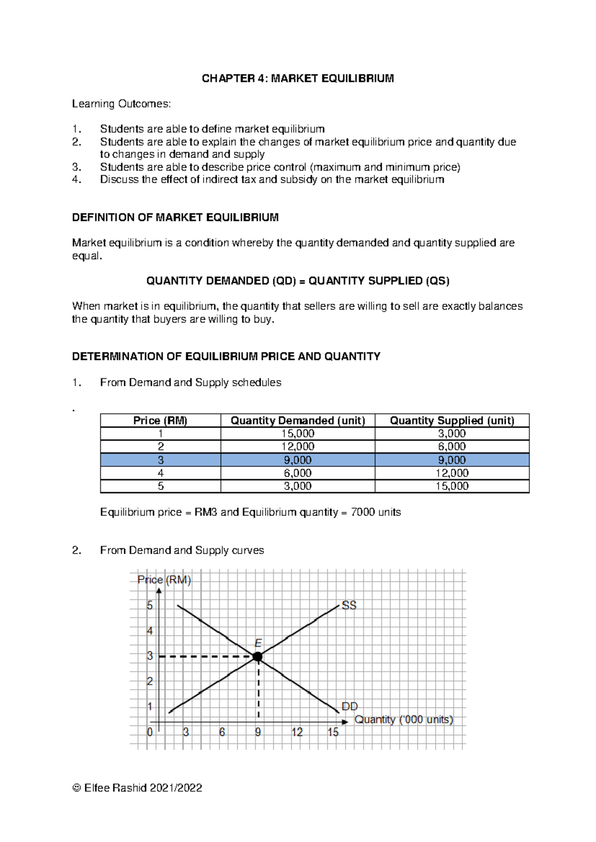 CHAPTER 4: MARKET EQUILIBRIUM - LECTURER NOTES - Studocu