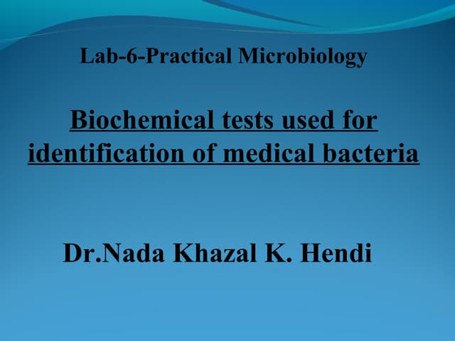 Biochemical test for identification of Bacteria | PPTX