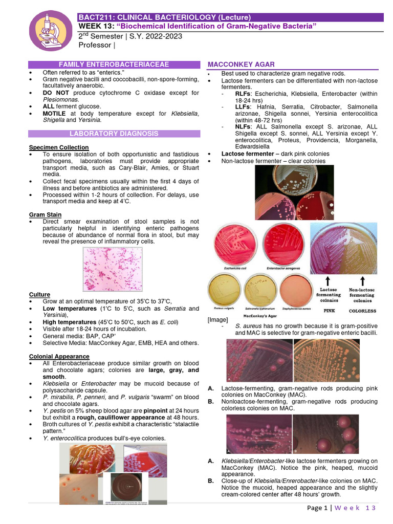 Week 13 - Biochemical ID of GN Bacteria | PDF