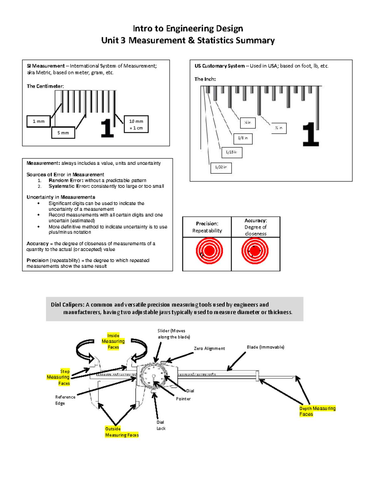 ENGR 101: Unit 3 Measurement & Statistics Summary Lecture Notes - Studocu
