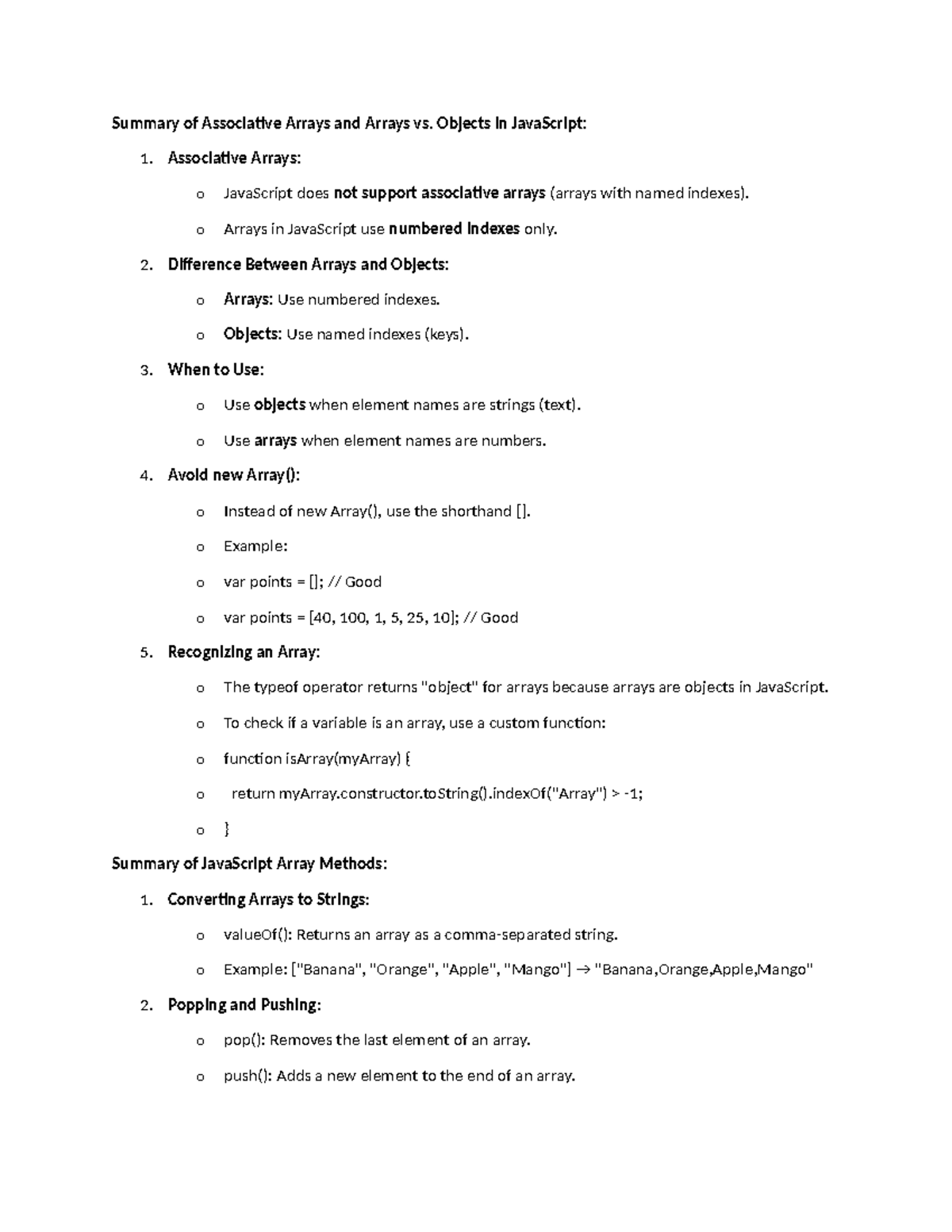 JavaScript Summary For Beginners