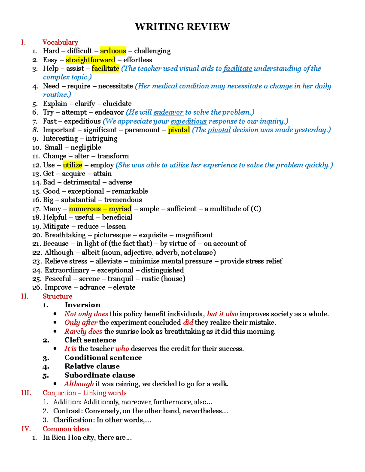 Writing Review I: Vocabulary & Structure - Lecture Notes - Studocu