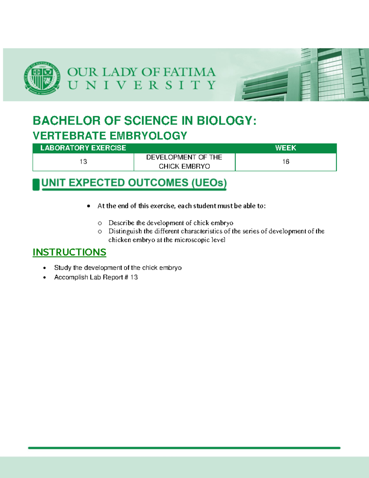 BSC BIO 301: Lab Report 13 - Chick Embryo Development Exercise - Studocu