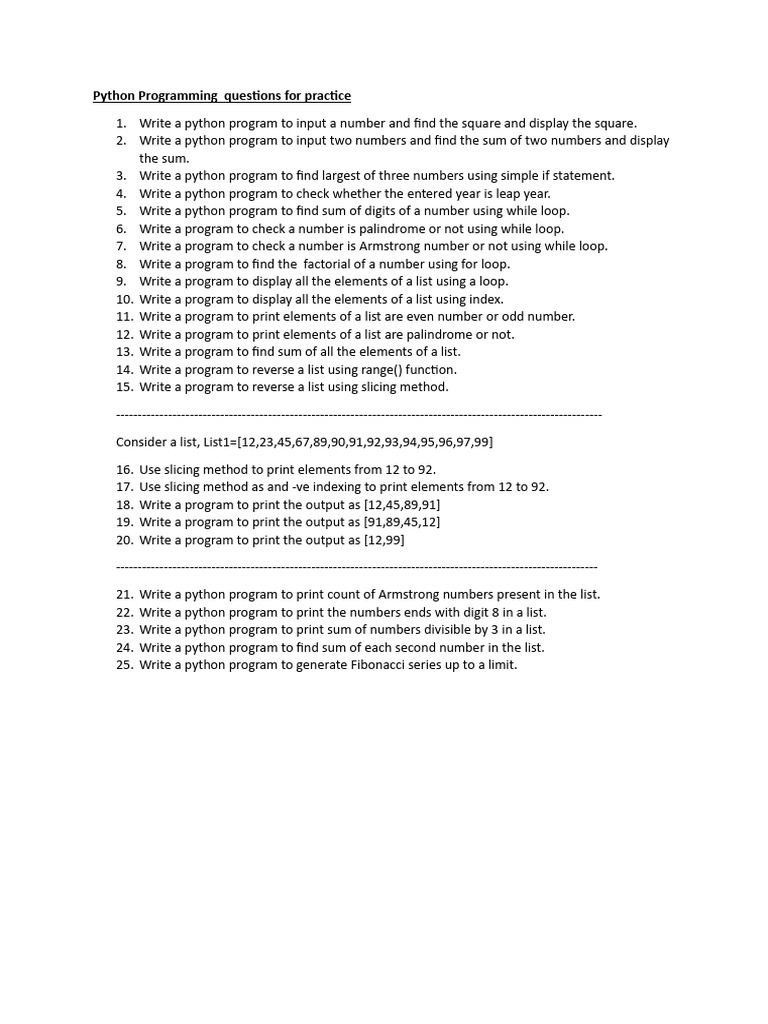 Python Worksheet For Practice | PDF | Python (Programming Language ...