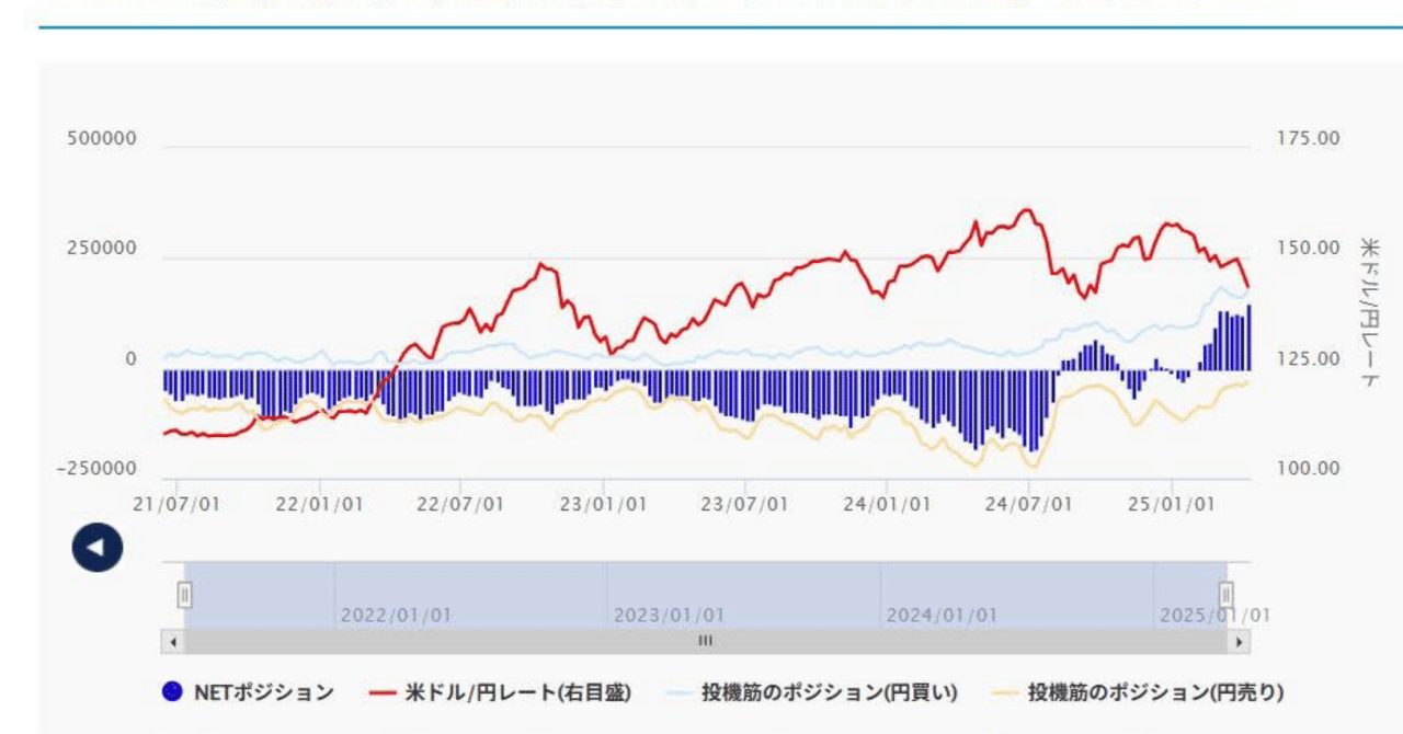 🇺🇸 シカゴIMMの非商業筋のポジションが、思いっ切り円ロングに傾斜している。4月8日時点で147,067コントラクトのネット円ロング、1 ...