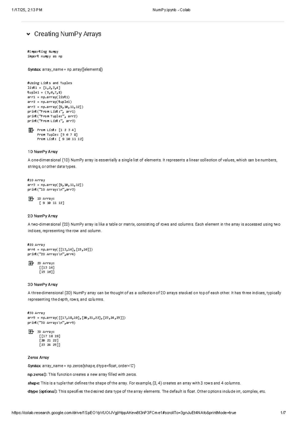 Creating NumPy Arrays and Operations Guide | Course Hero