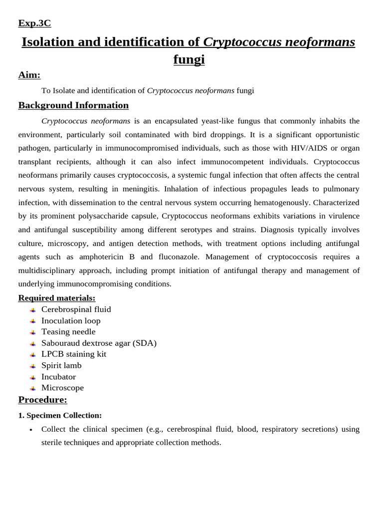 EXP.3C-Isolation and Identification of Cryptococcus Neoformans Fungi ...