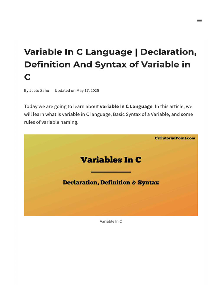 Variables in C - C Variables, Constants and Literals Variables in C A ...