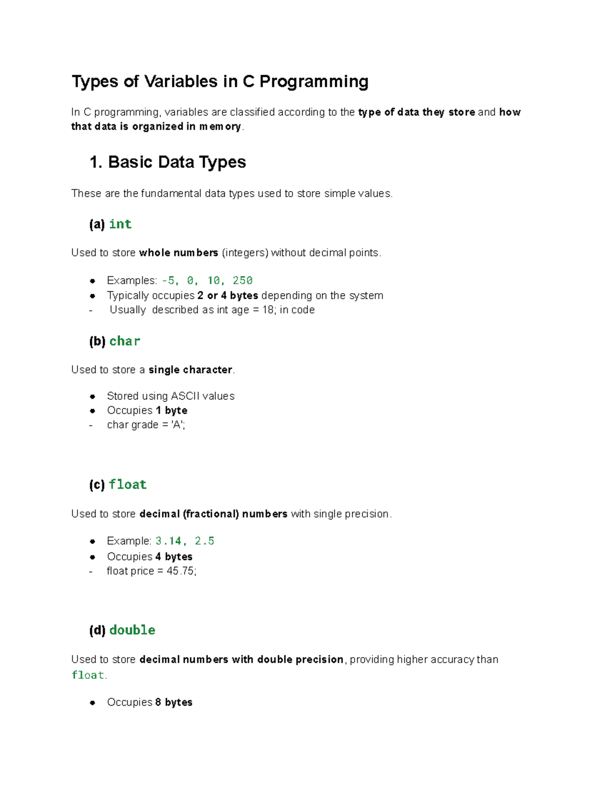 C programing notes - Variables and Data Types in C: Variables: In C, a ...