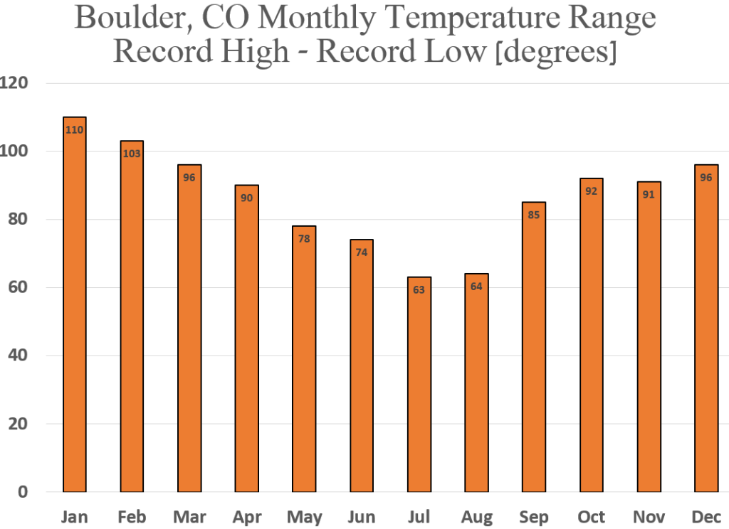 Range between record high and low temperatures in... - Maps on the Web