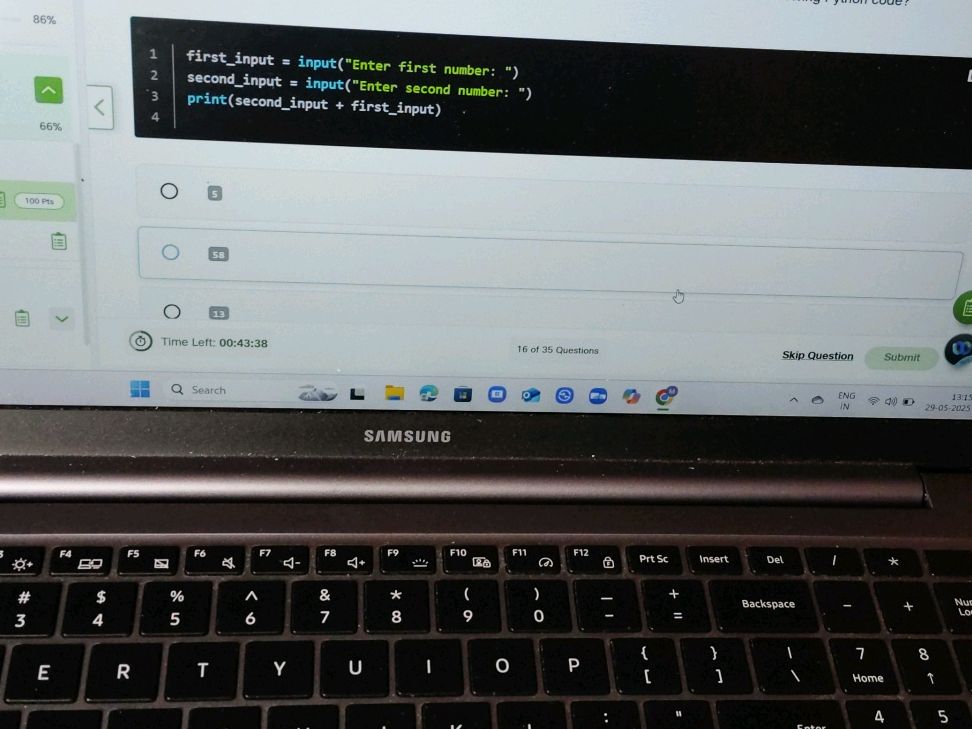 ```python first_input = input("Enter first | StudyX
