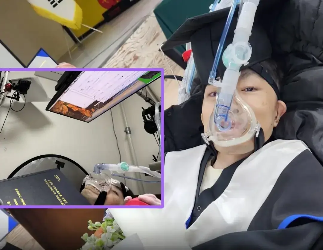 Acostado y sin moverse, él concluyó el máster parpadeando las palabras ...