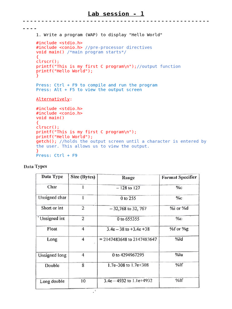 Lab Session - 1 (Data Types, Input-Output Functions) | PDF | Computer ...
