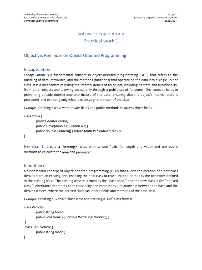 OOP Lab Manual: Exercises & Activities | PDF | Class (Computer ...