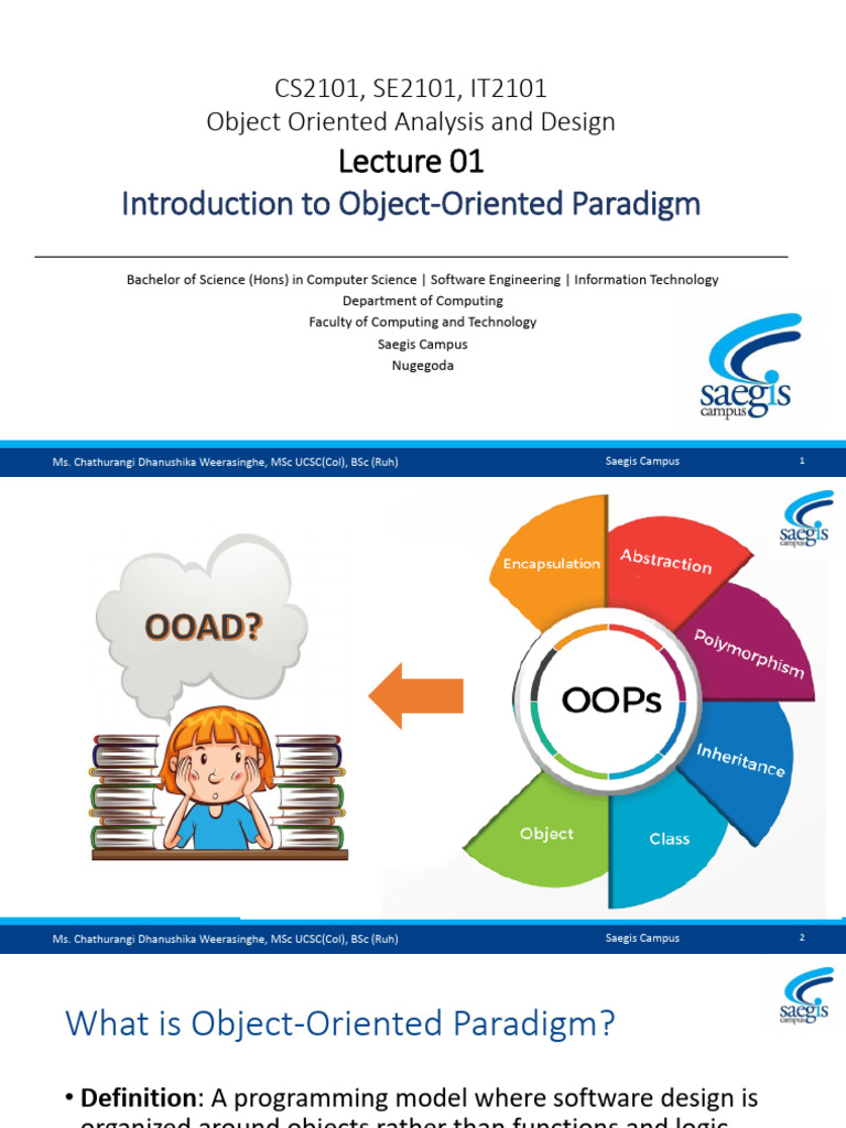 Lecture 1: Intro to Object-Oriented Programming (OOP) - Adiz - Studocu
