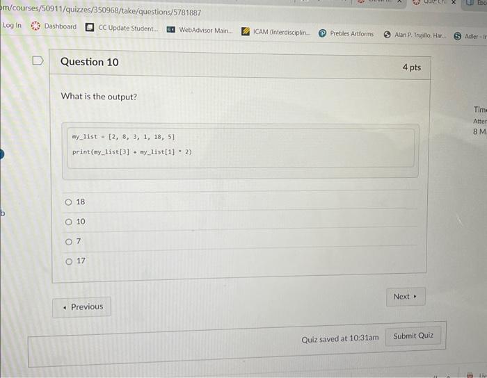 π£πππ΅πΌπ» π€ππ²πππΆπΌπ» / π€ππΆπ; What is the output of the following Python code ...