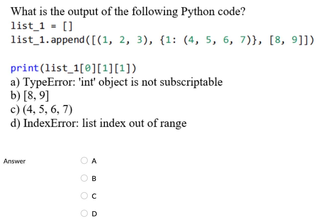 What is the output of the following Python code? ~ Computer Languages ...