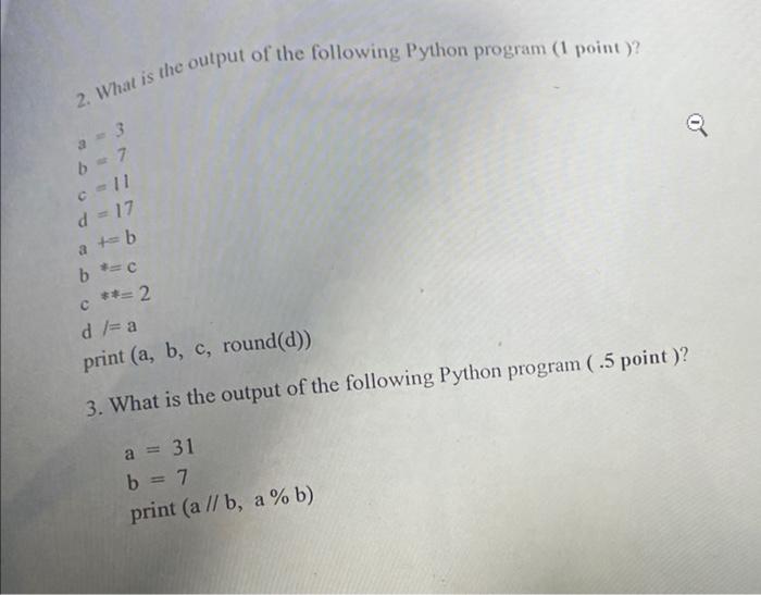 Solved 2. What is the output of the following Python program | Chegg.com