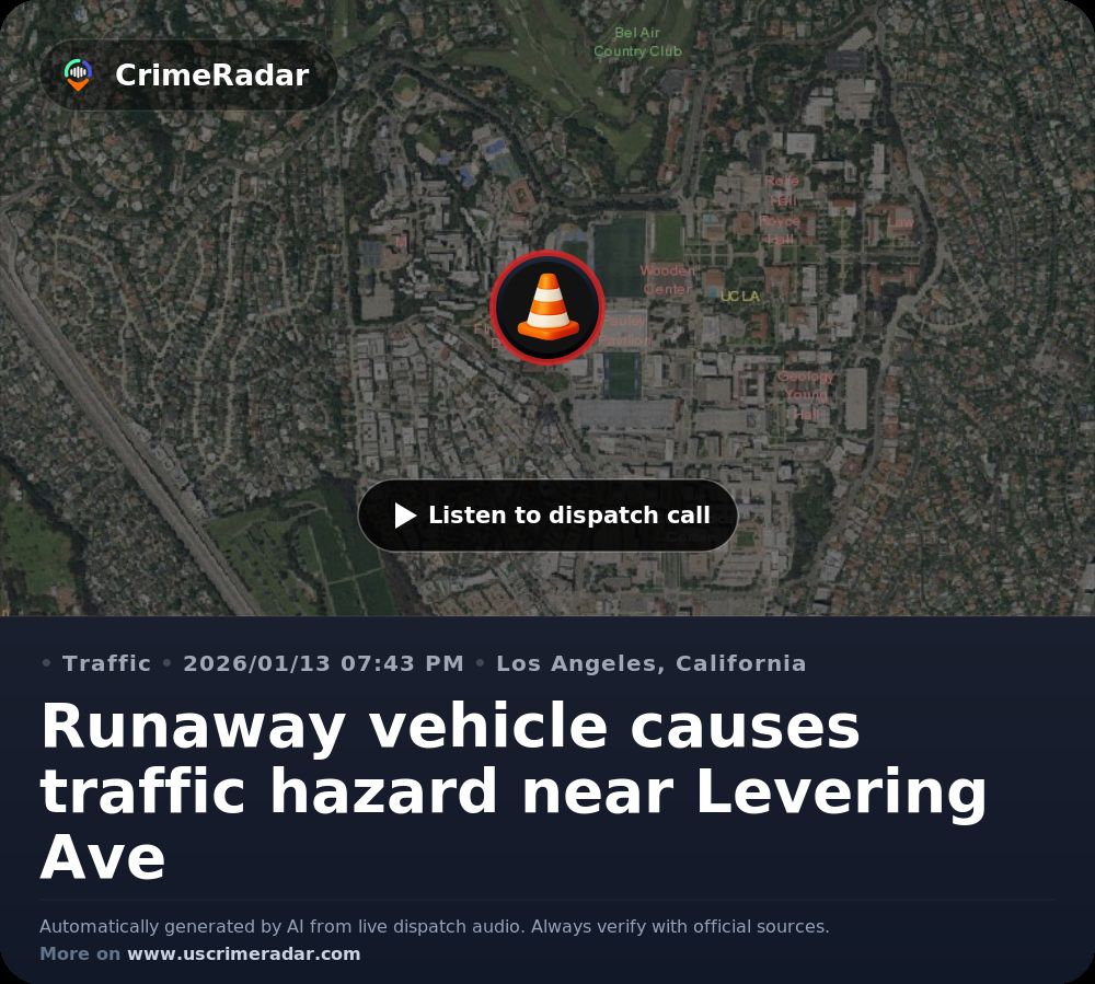 Runaway vehicle causes traffic hazard near Levering Ave, Los Angeles CA ...