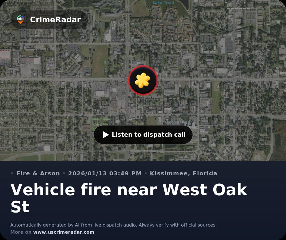 Vehicle fire near West Oak St, Kissimmee FL | CrimeRadar