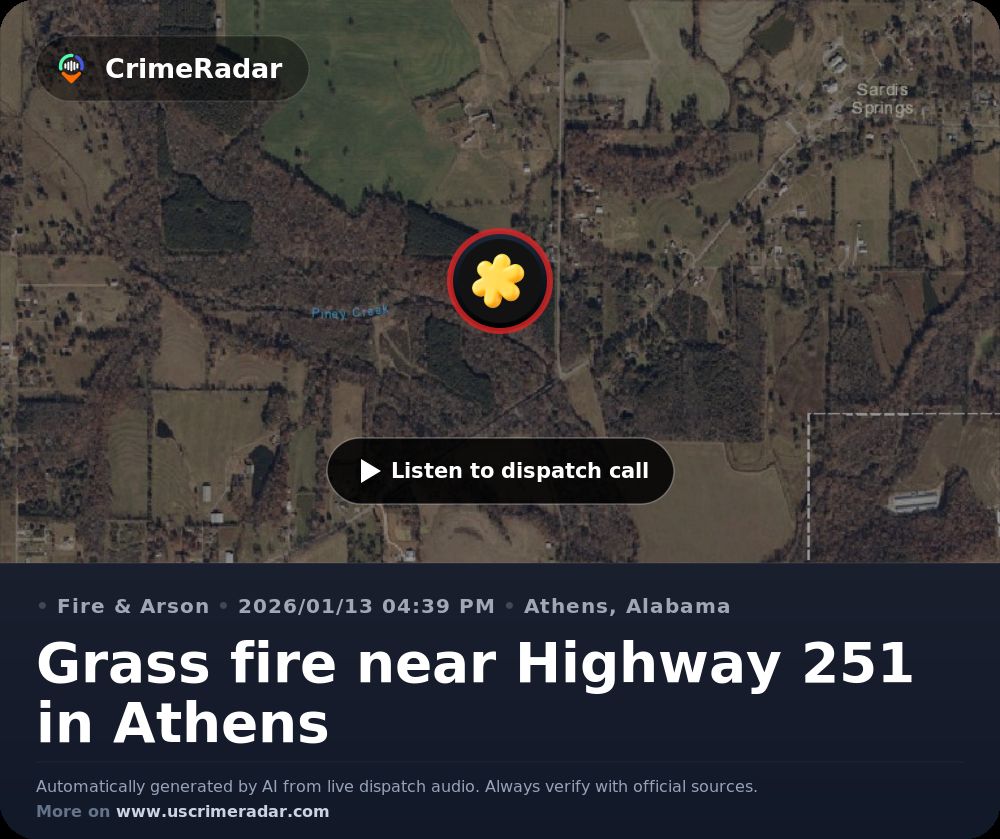 Grass fire near Highway 251 in Athens, Athens AL | CrimeRadar