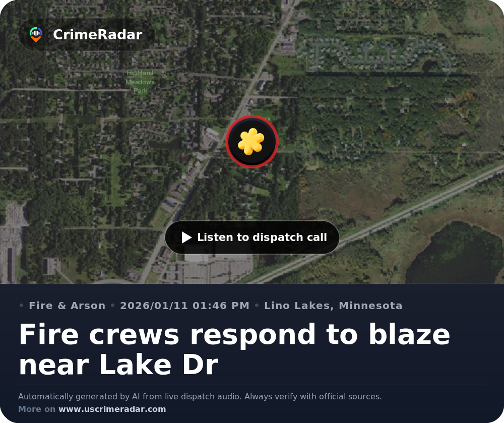 Fire crews respond to blaze near Lake Dr, Lino Lakes MN | CrimeRadar