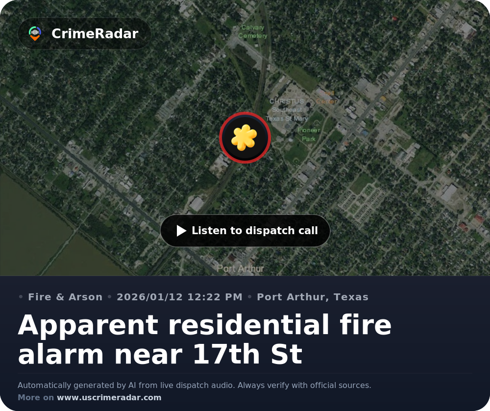 Apparent residential fire alarm near 17th St, Port Arthur TX | CrimeRadar