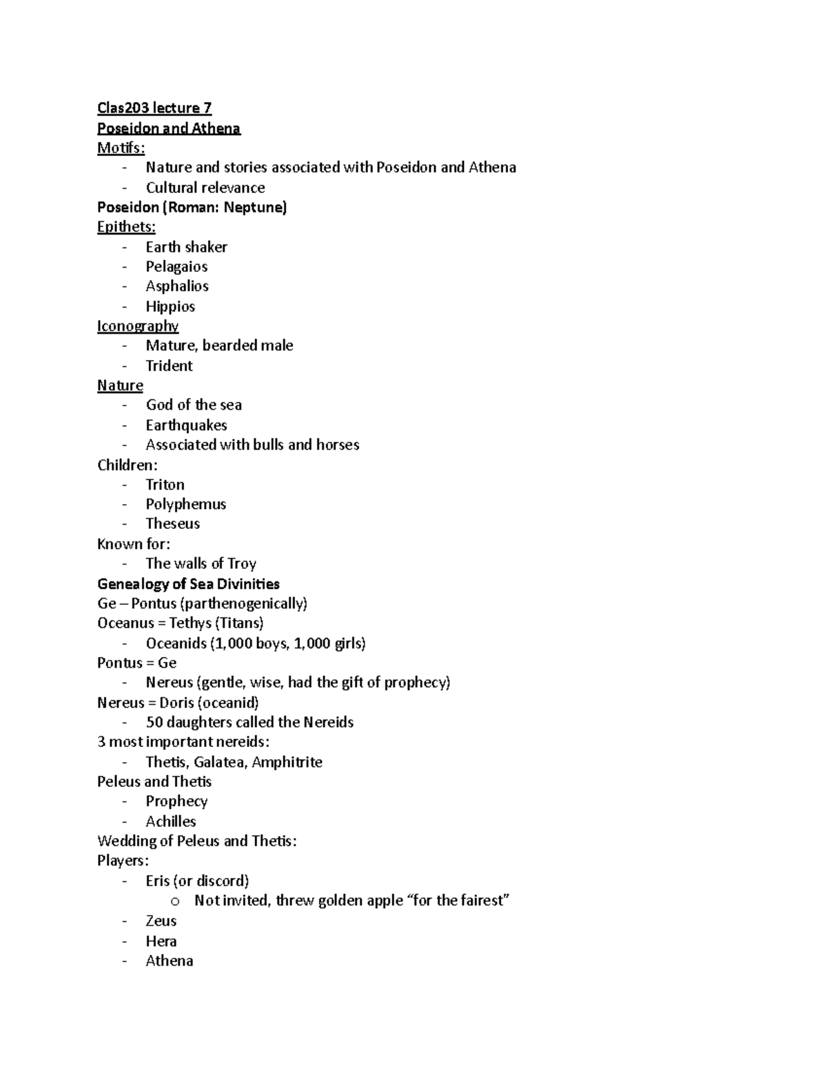 Lecture 7 - Clas203 lecture 7 Poseidon and Athena Motifs: - Nature and ...