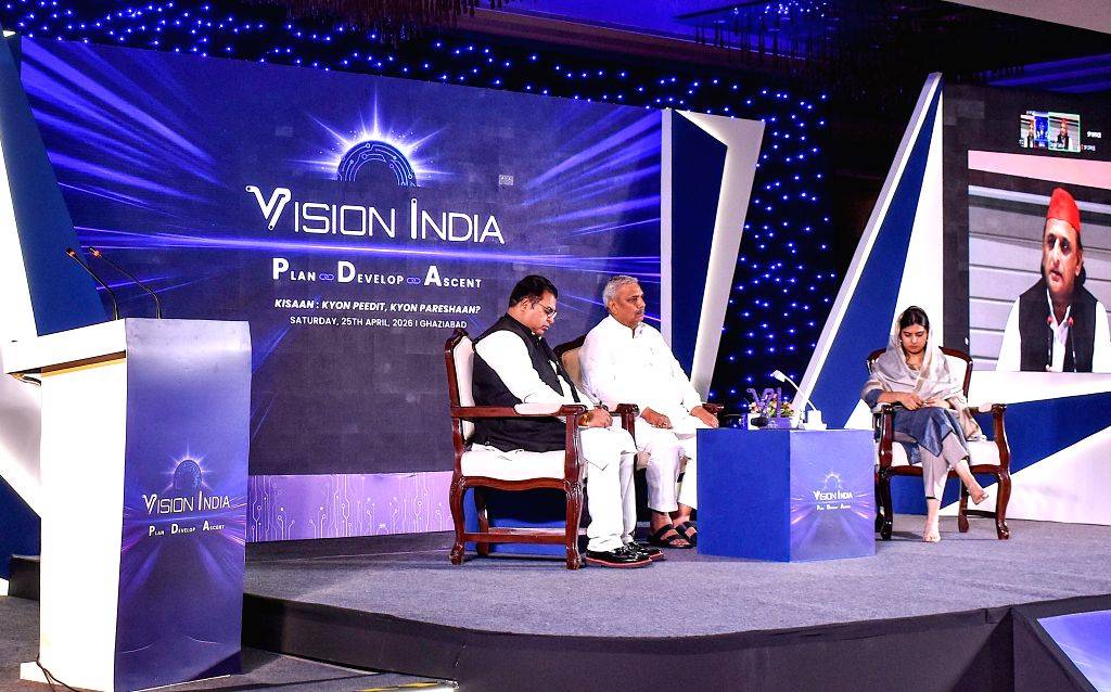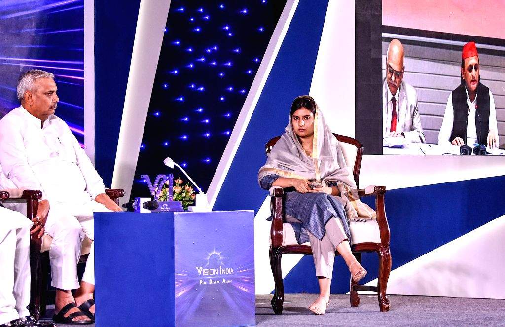 Akhilesh Yadav interacts with media via video conference