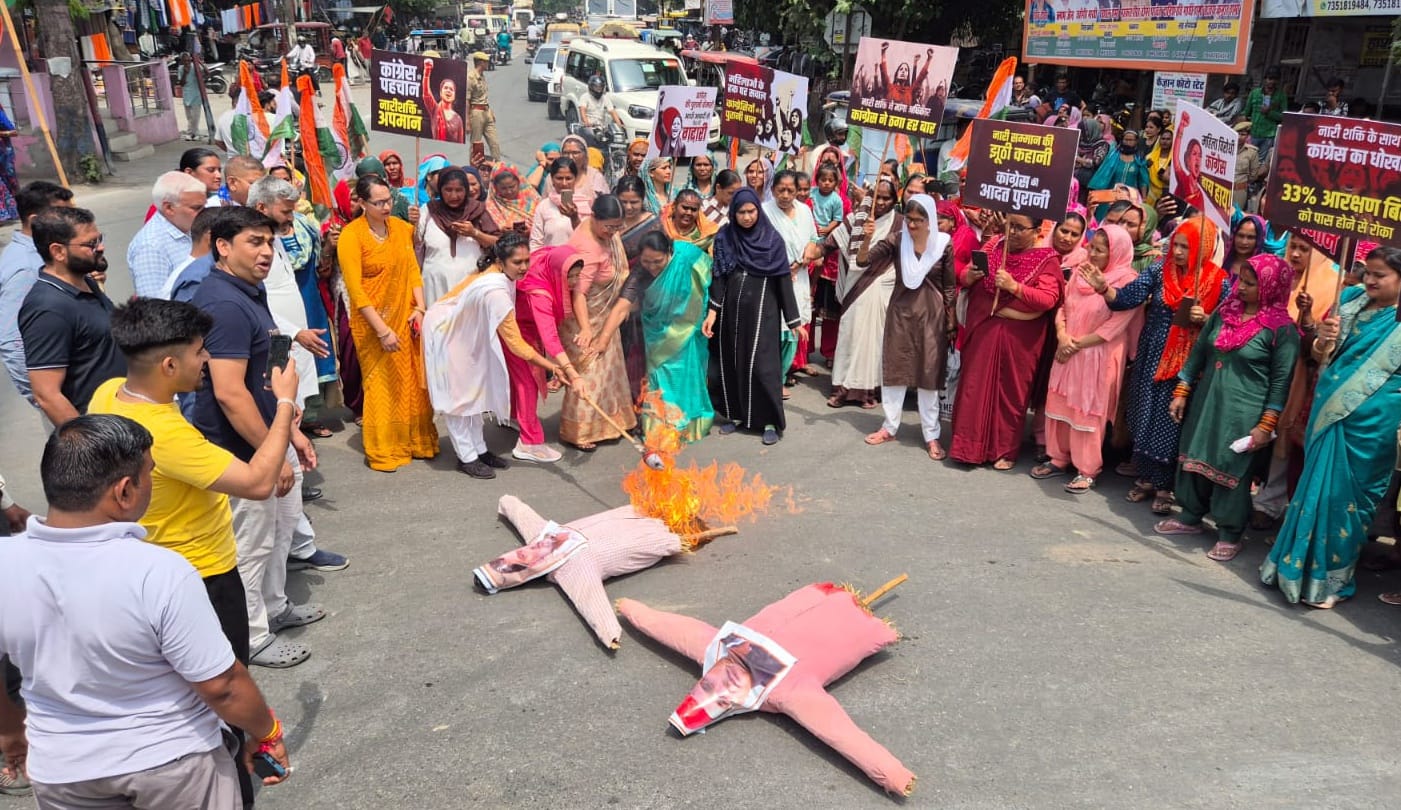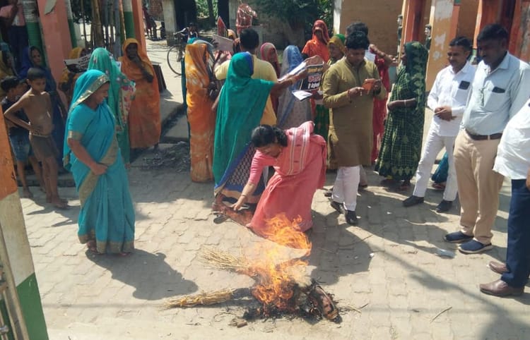 Women Burnt Effigies Of Rahul Gandhi And Akhilesh Yadav. - Bijnor News ...