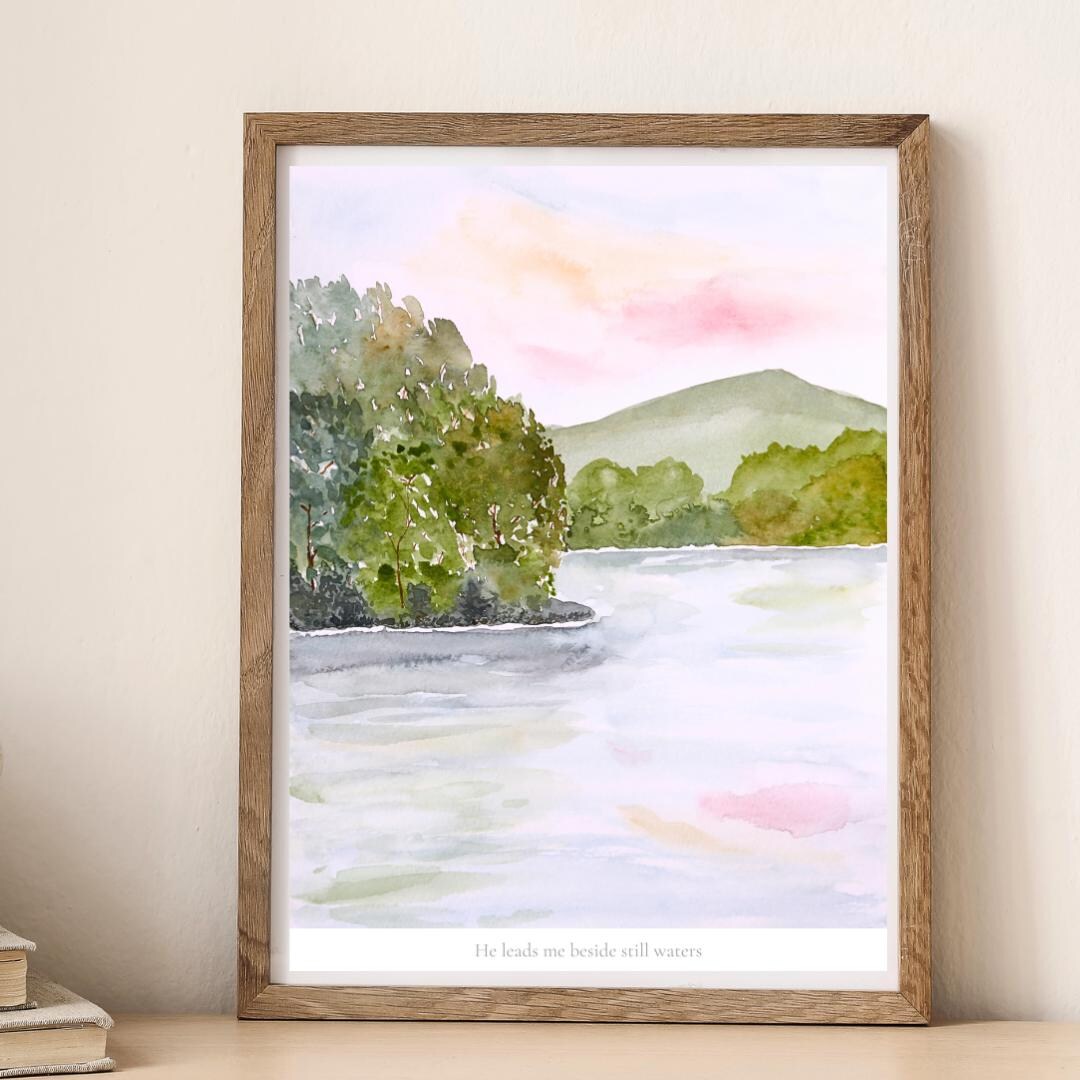 Psalm 23 Watercolour Print, Peaceful Landscape Christian Wall Art ...
