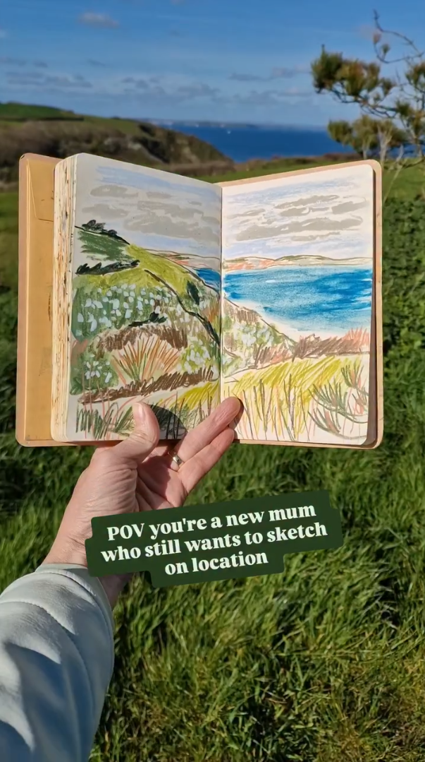 Coastal Landscape Mixed Media Painting Cornwall Inspired Art