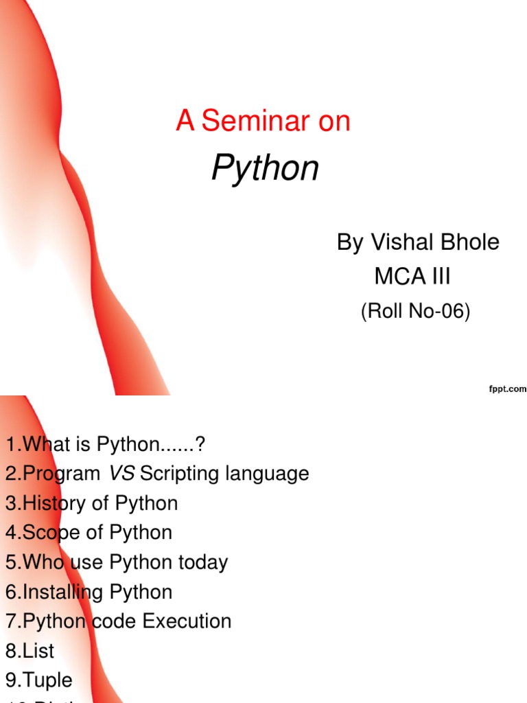 Based on this image's title: “Python Seminar | PDF | Python (Programming Language) | Scripting Language”