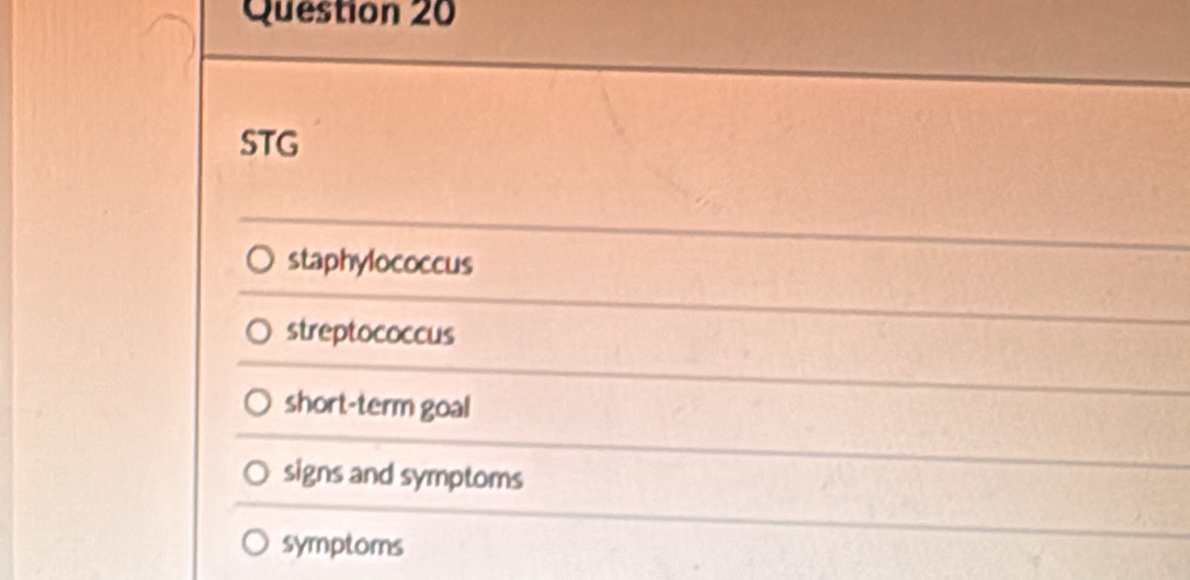Solved: STG staphylococcus streptococcus short-term goal signs and ...