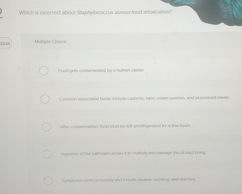 Solved: Which is incorrect about Staphylococcus aureus food ...