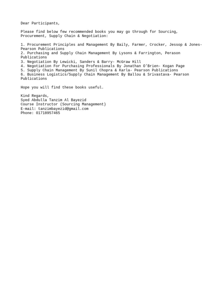 Recommended Books for Supply Chain & Procurement | PDF