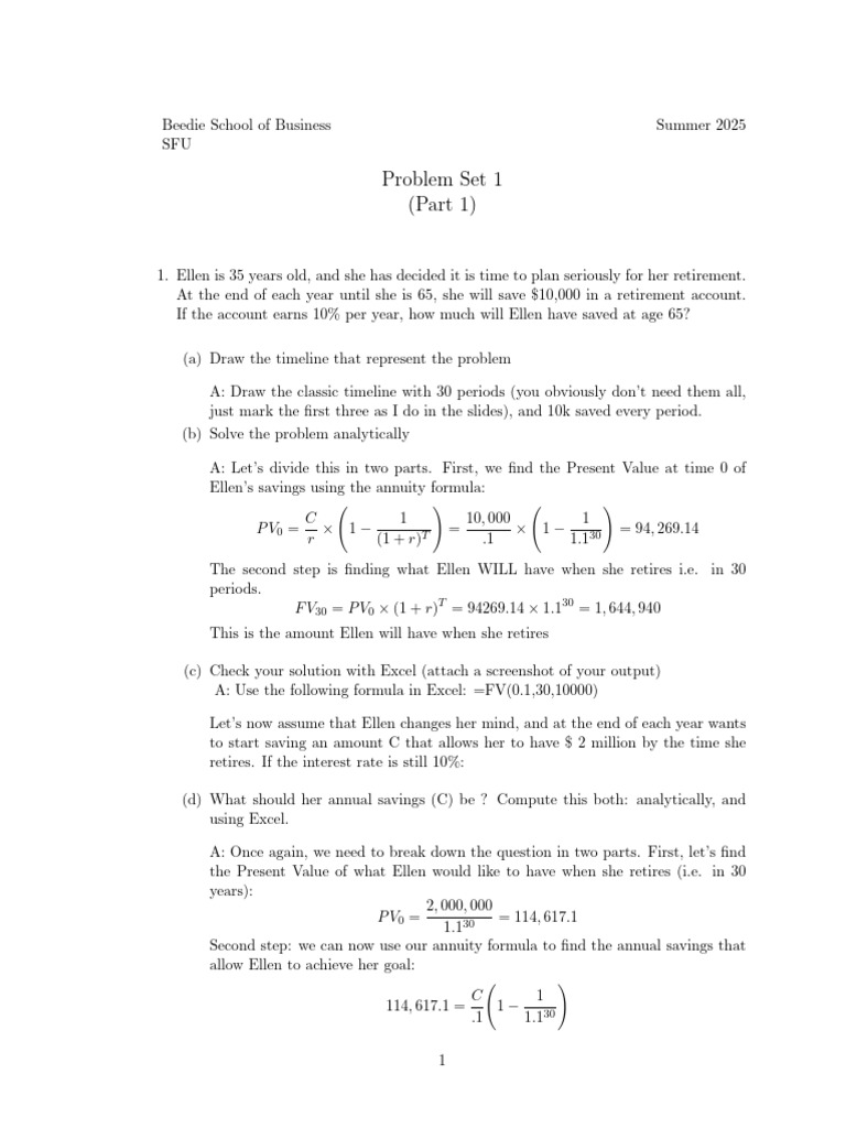 Problem Set 1 Part 1 Full Answers | PDF | Present Value | Discounting